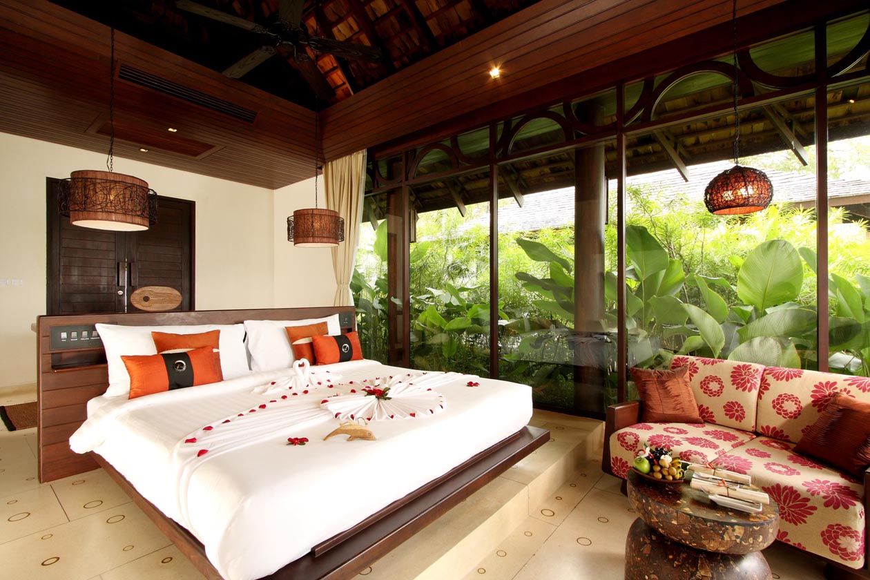 緑が美しいガーデンに囲まれたヴィラや、目の前にラワイビーチが広がるヴィラは、とても静かで日常のストレスを忘れてのんびりリラックスできますね。熱帯気候のプーケットに合わせて設計されていて、高い天井と大きな窓で、涼しい風が入ってくるような造りになっています。キングサイズまたはツインベッドから選択できて、70㎡もある広々とした部屋でゆったり過ごすことができます。独立したバスタブがついているのが日本人には嬉しいですね。