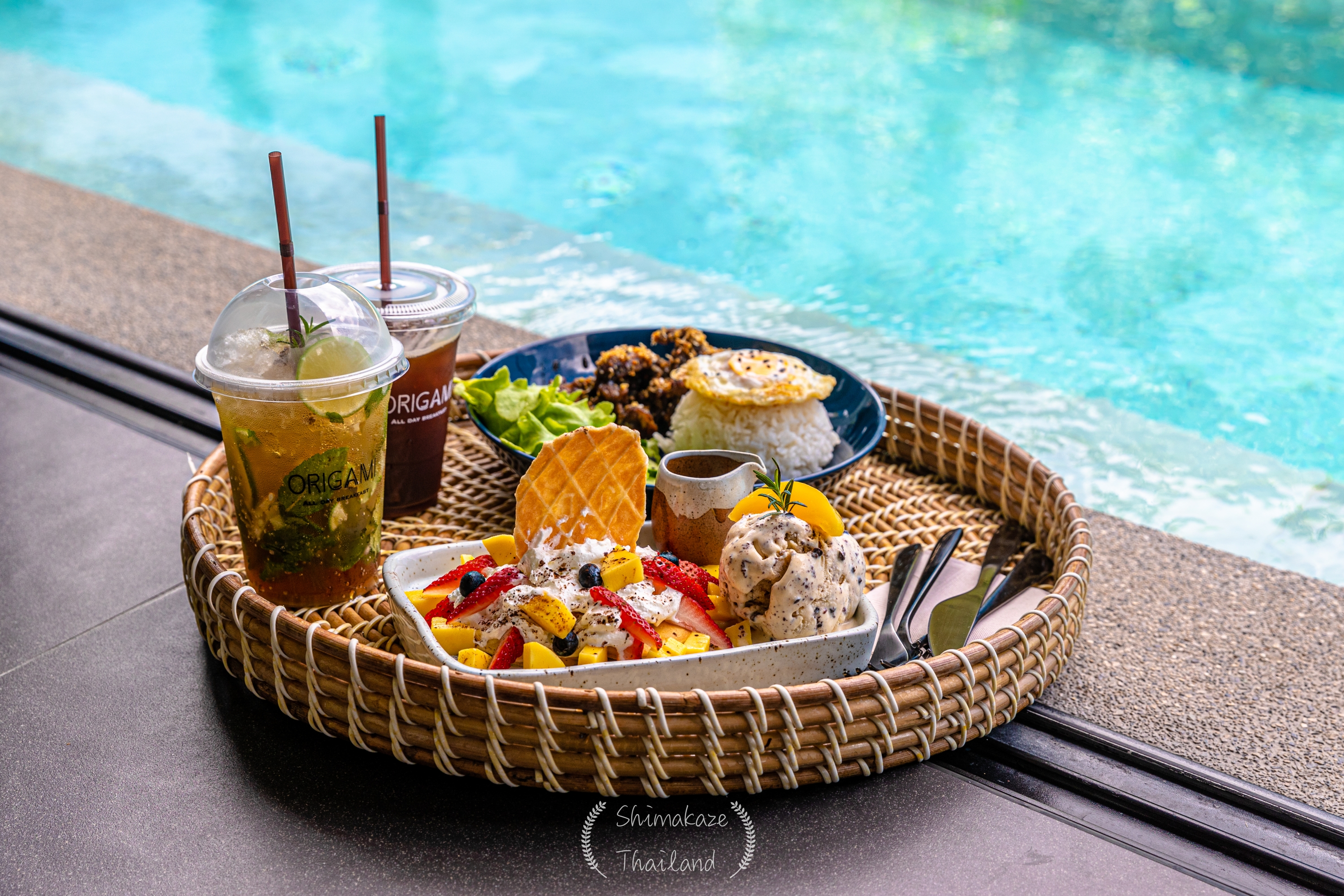 カフェでオーダーを済ませ、座席について待っていると、女性スタッフより、『ドリンクやフードはプライベートプールヴィラで頂いてくださいね!』と言われ驚きました。
