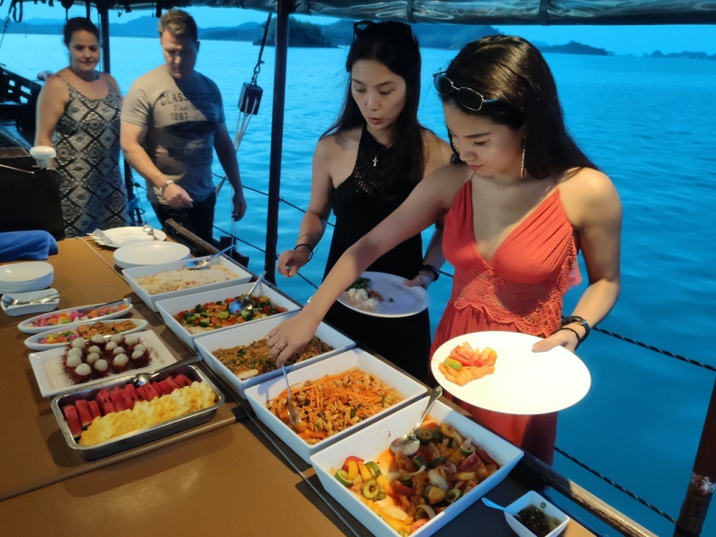 当社日本語ガイド同行、パンガー湾のディナークルーズ。ジャンク船で夕方からサンセット&ディナーを満喫。高級マリーナで豪華。パンガー湾の景色と大自然を楽しむツアー。