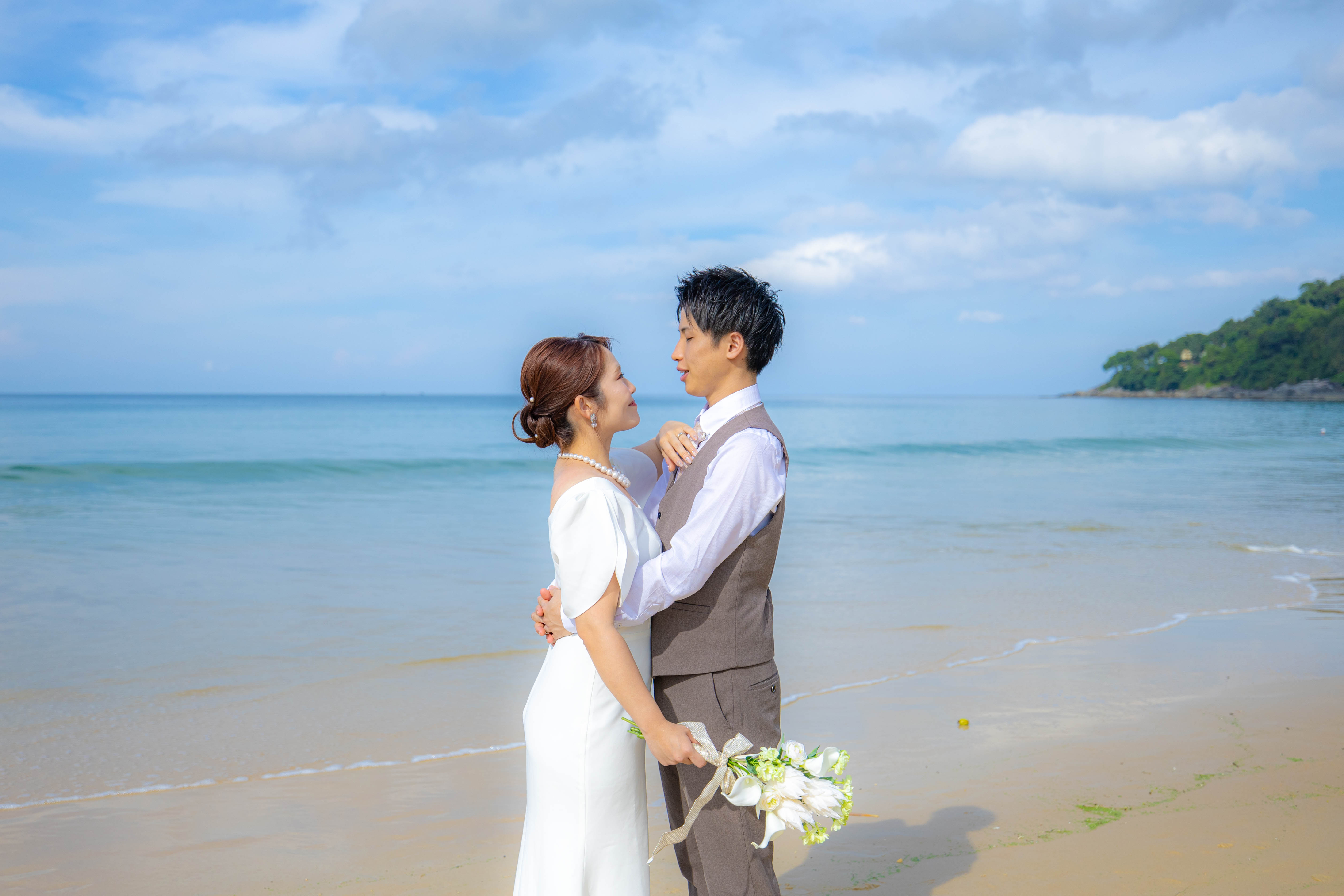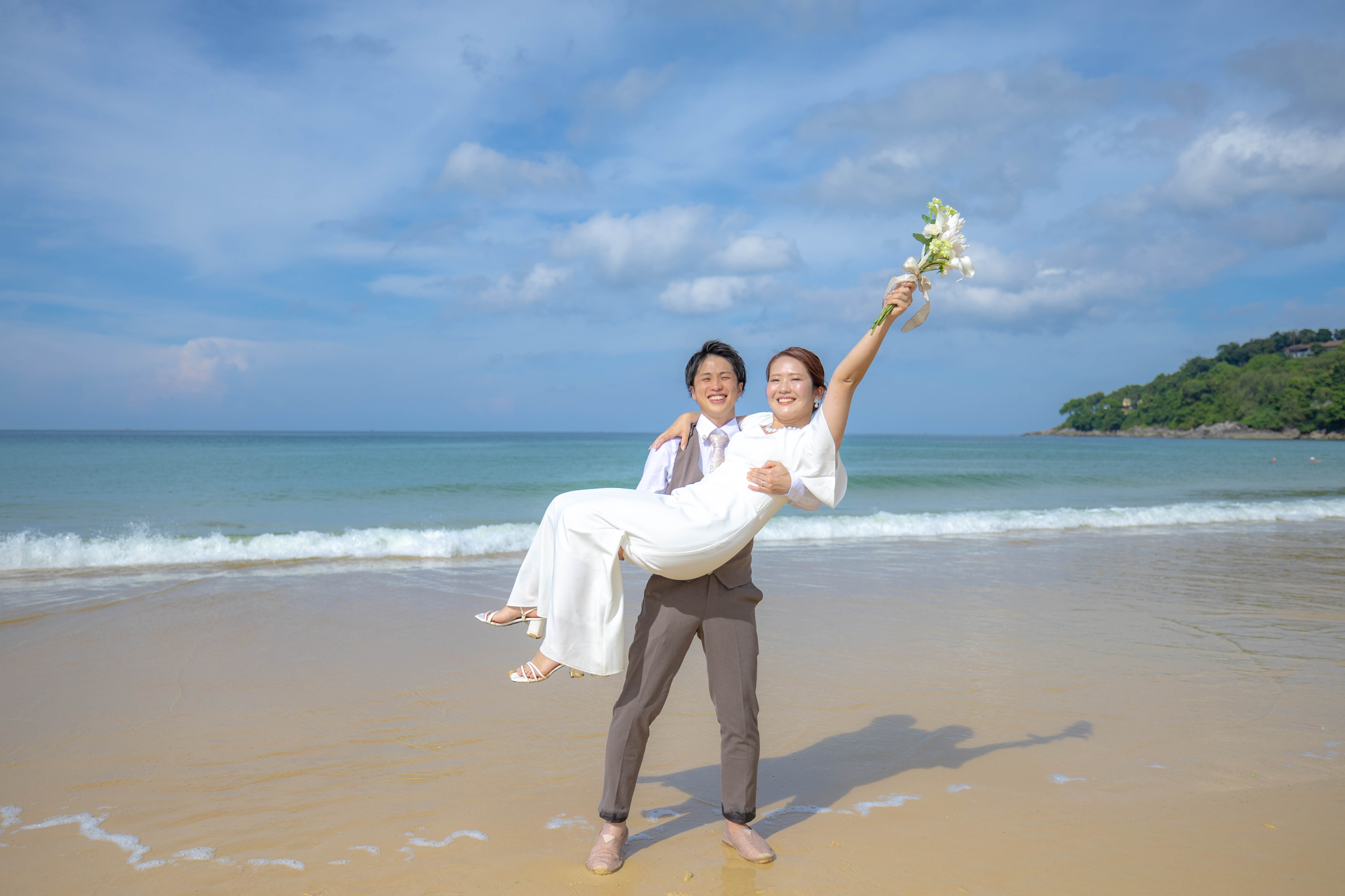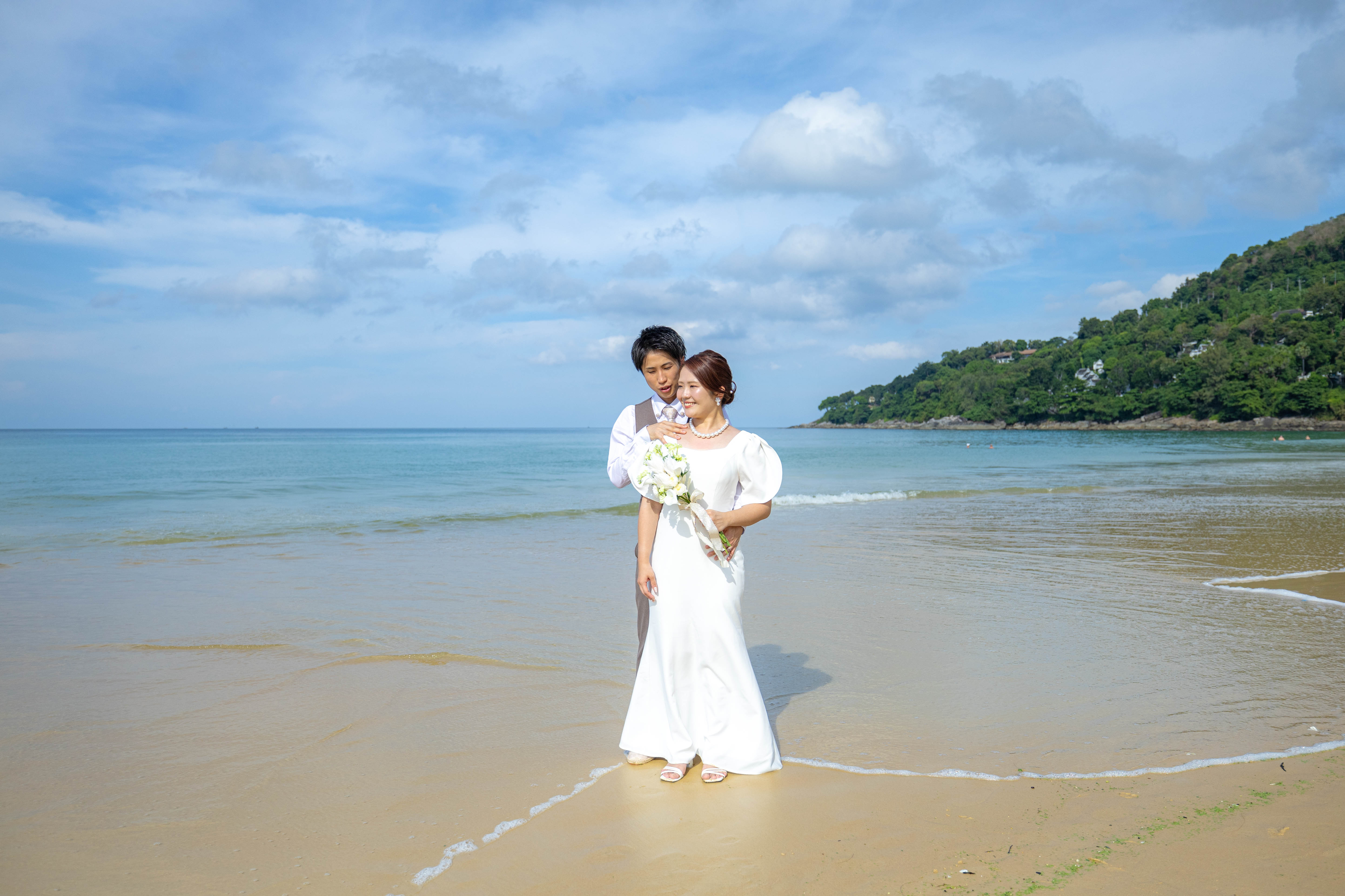 日本人フォトグラファーによるウェディングフォト撮影。カロンビーチでウェディングフォト撮影。
