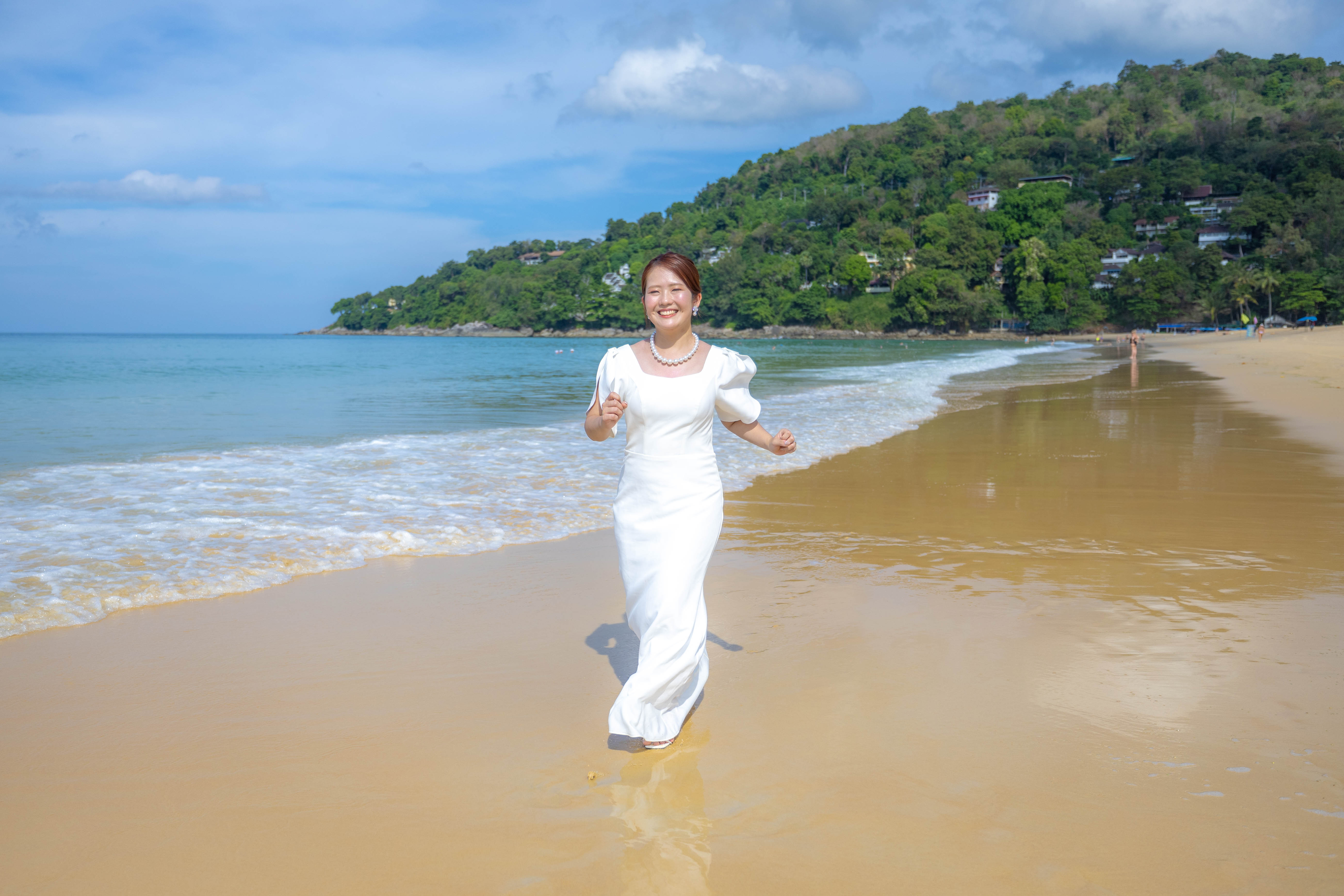 プーケットの白い砂浜でプーケットらしい記念撮影を楽しめます。
